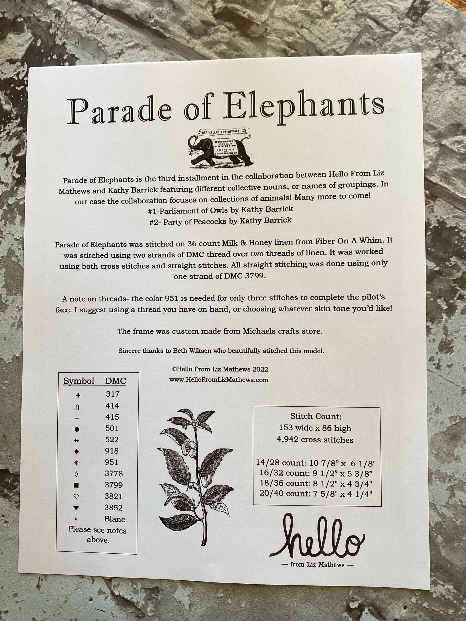 *Please check out the picture of the back of the pattern to get model info and floss needed.