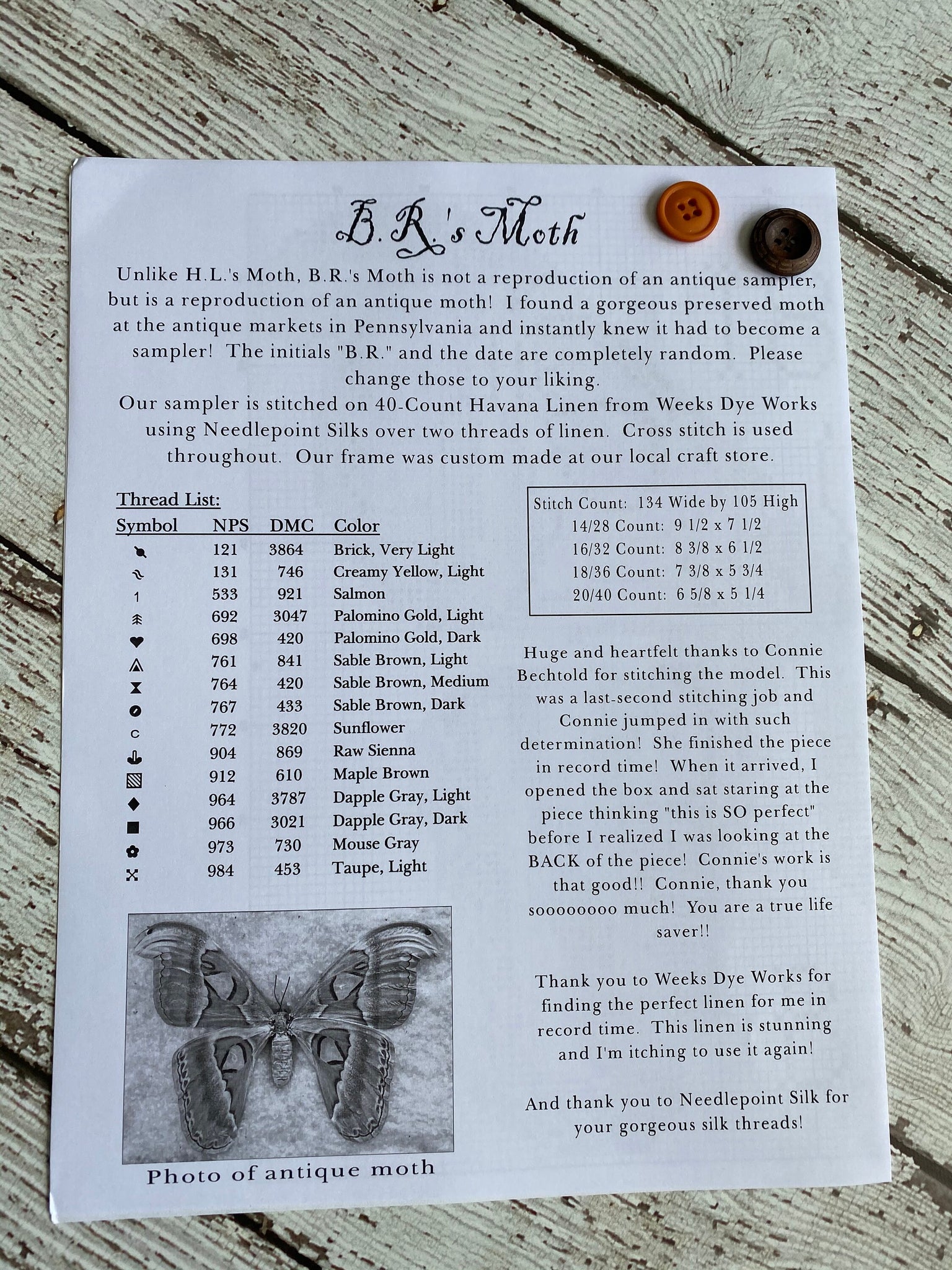 The model was stitched on 40 count Havana linen by Weeks Dye Works, Needlepoint Silk