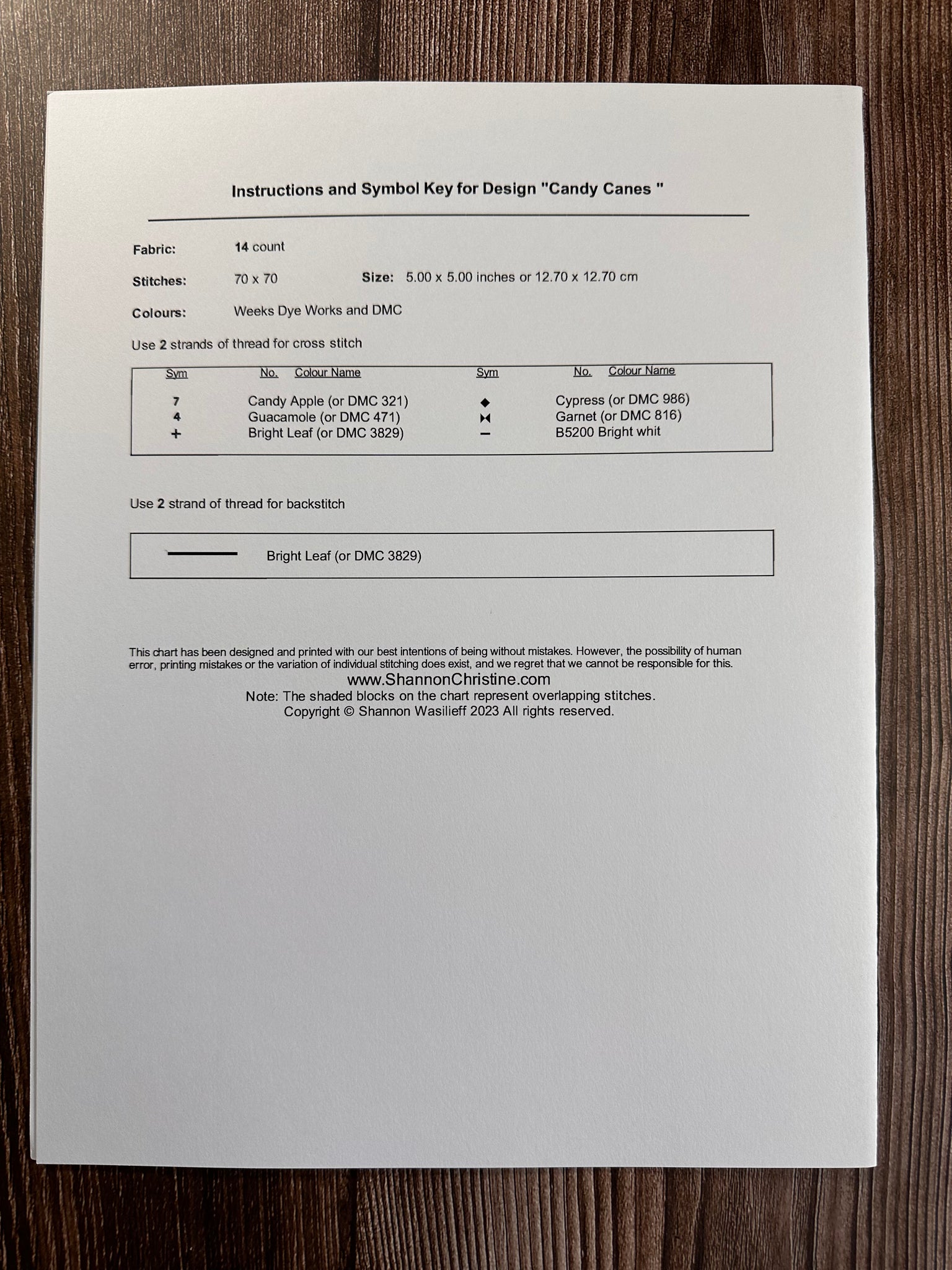 *Please check out the picture of the back of the pattern to get model info and floss needed.