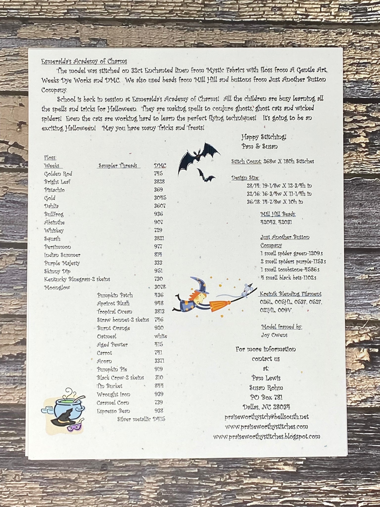 *Please check out the picture of the back of the pattern to get model info and floss needed.