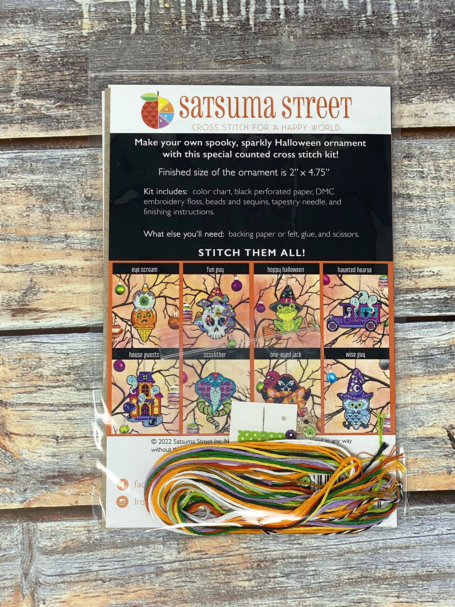 Kit includes everything you need - pattern, DMC, beads/sequins, tapestry needle & perforated paper. Also includes finishing instructions.