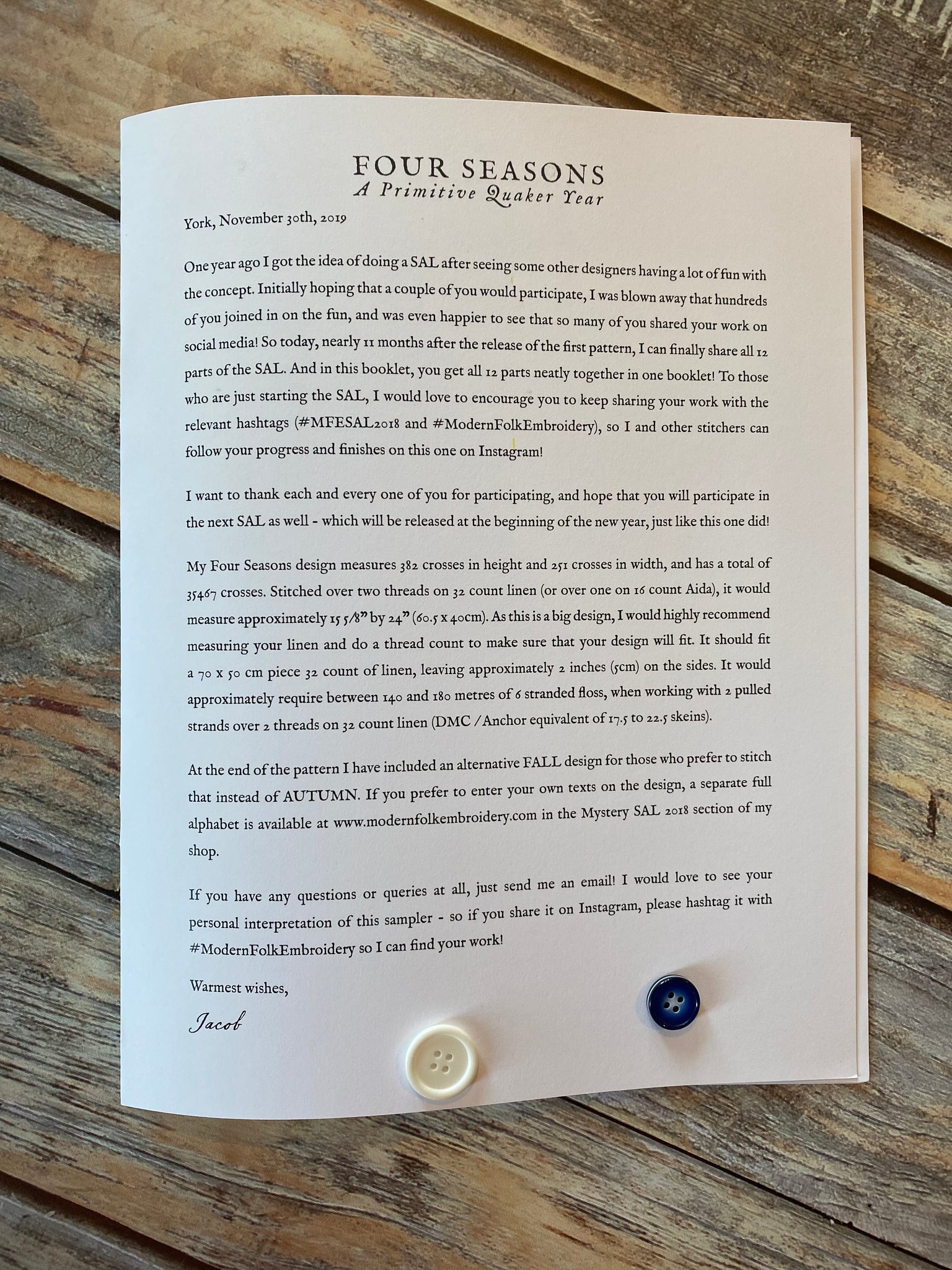 Four Seasons: A Primitive Quaker Year | MFE SAL 2018 | Modern Folk Embroidery