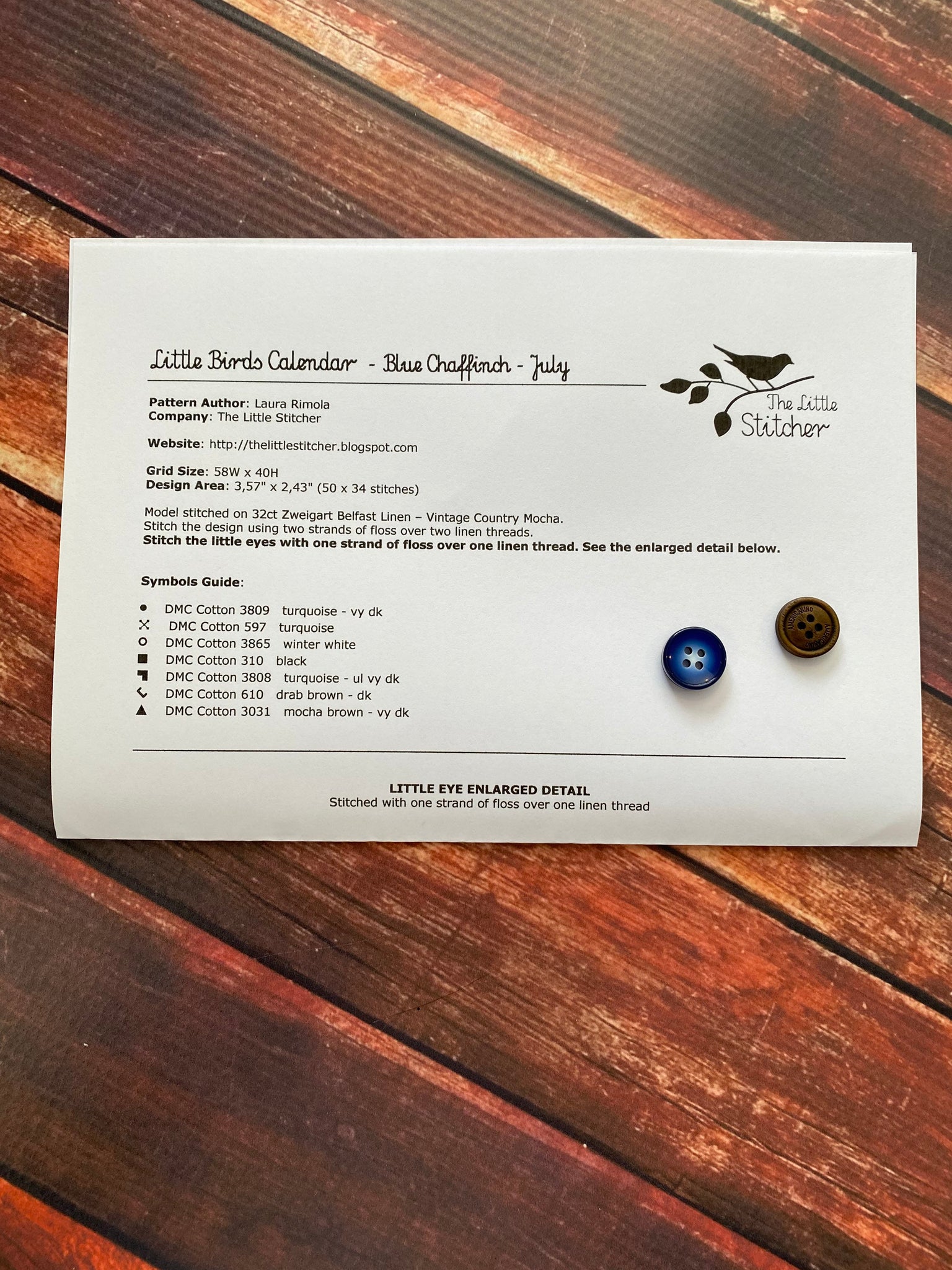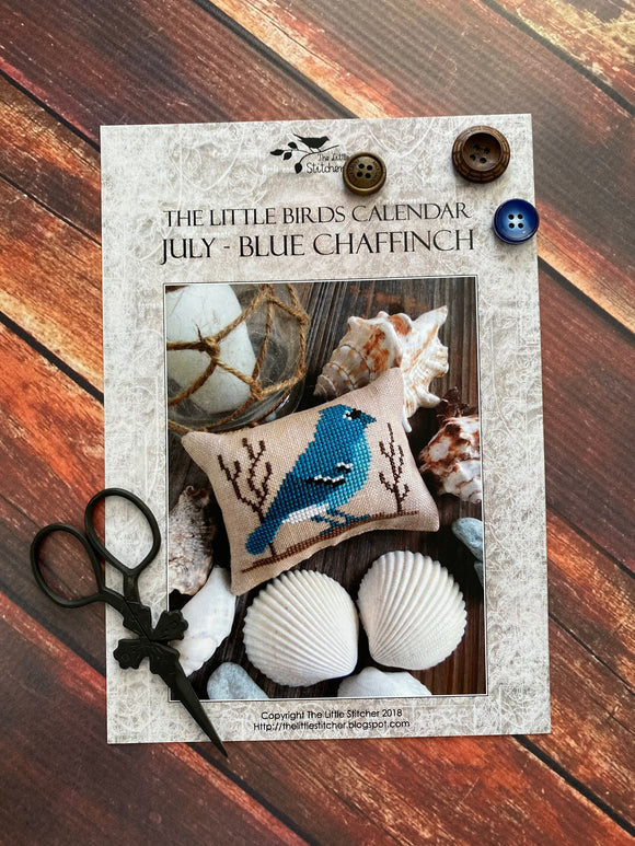 July - Blue Chaffinch | The Little Birds Calendar | The Little Stitcher
