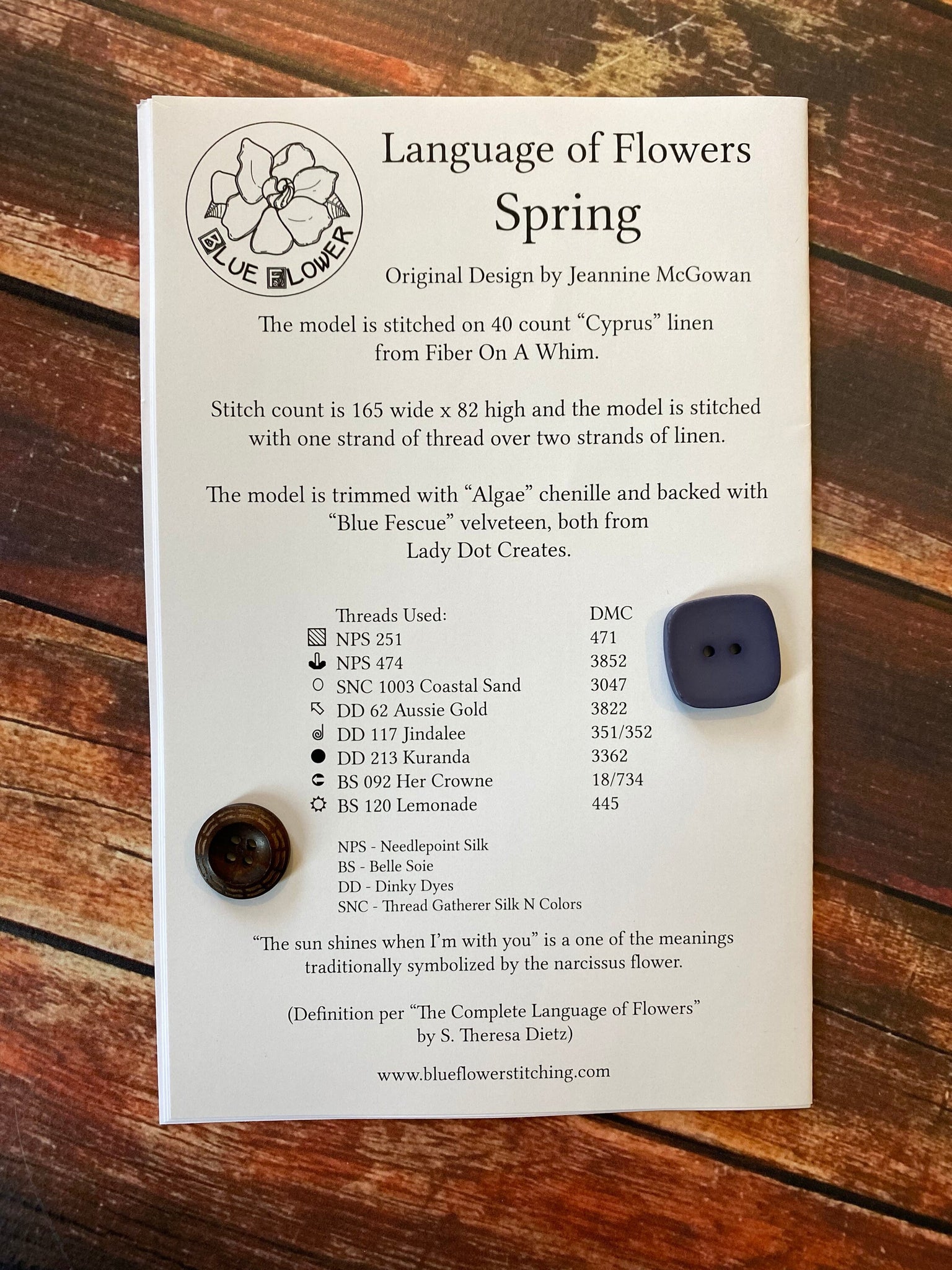 *Please check out the picture of the back of the pattern to get model info and floss needed.