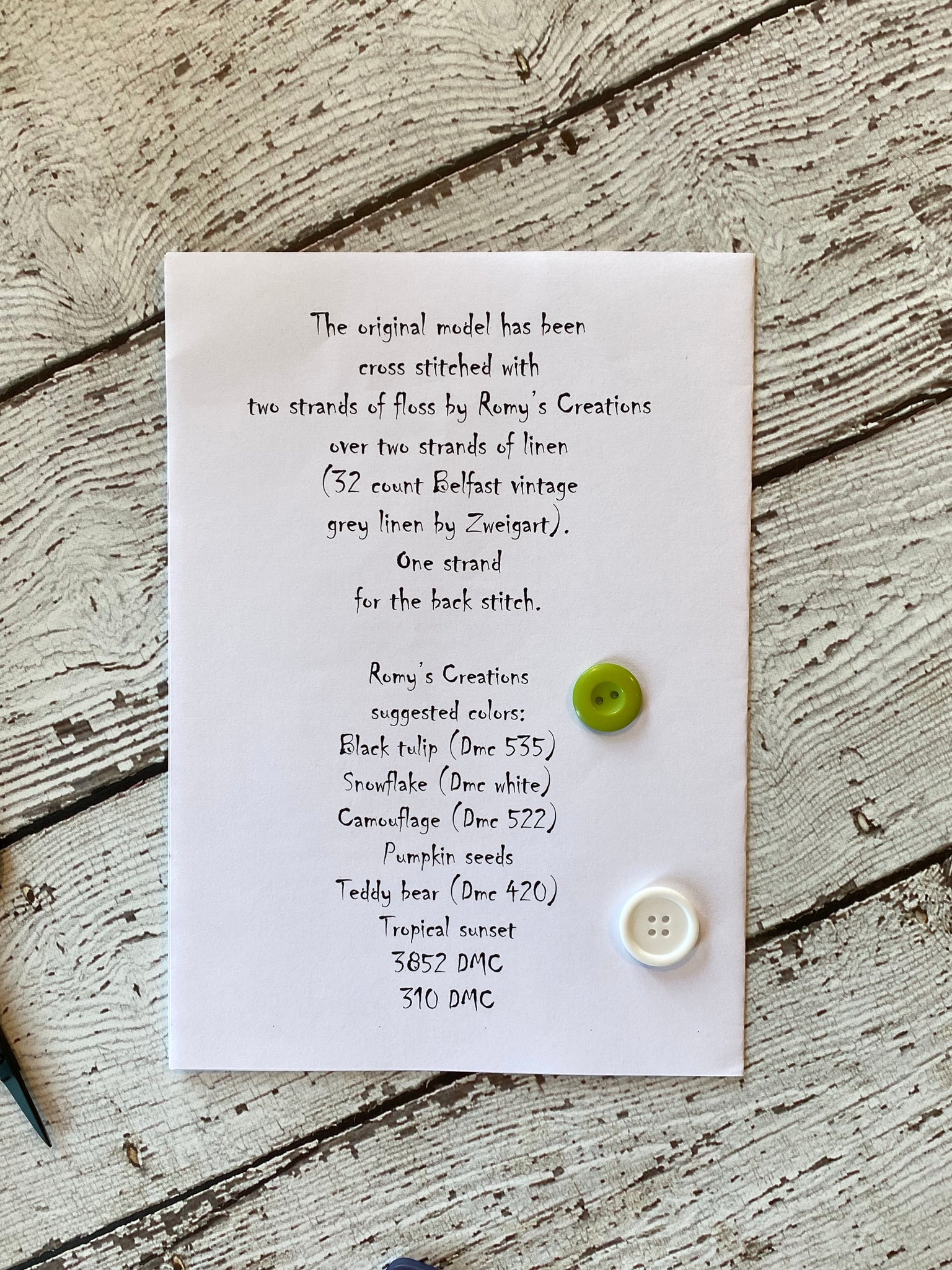 *Please check out the picture of the back of the pattern to get model info and floss needed.