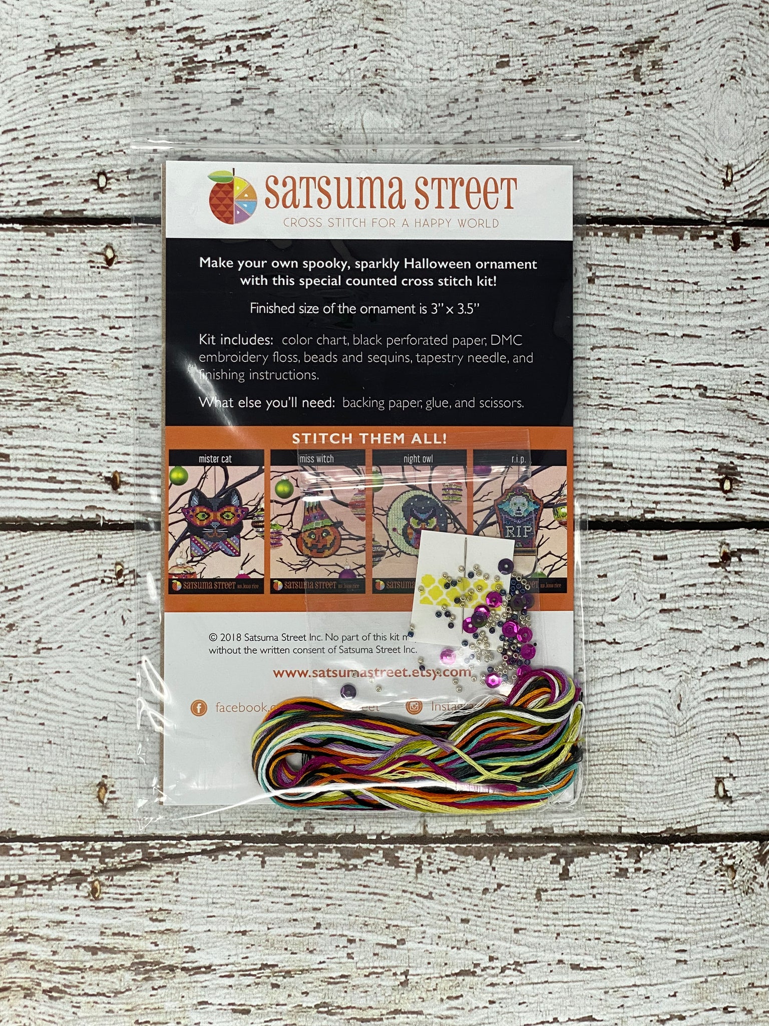 Kit includes everything you need - pattern, DMC, beads/sequins, tapestry needle & perforated paper. Also includes finishing instructions.