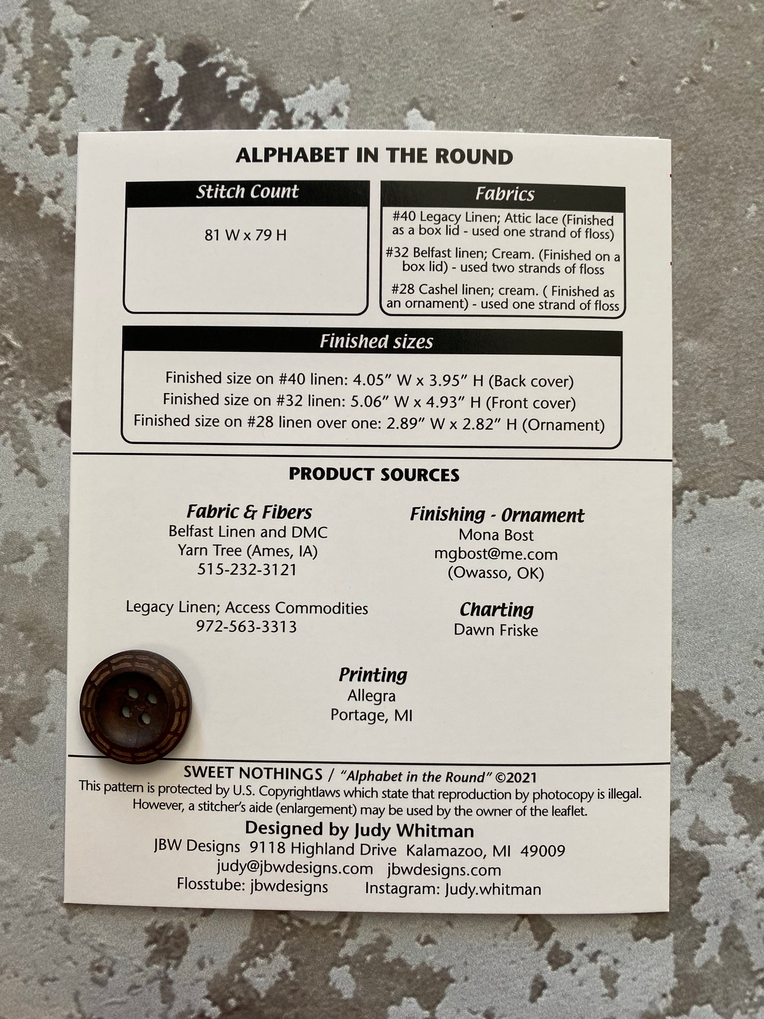 Alphabet in the Round | JBW Designs *Please check out the picture of the back of the pattern to get model info and floss needed.