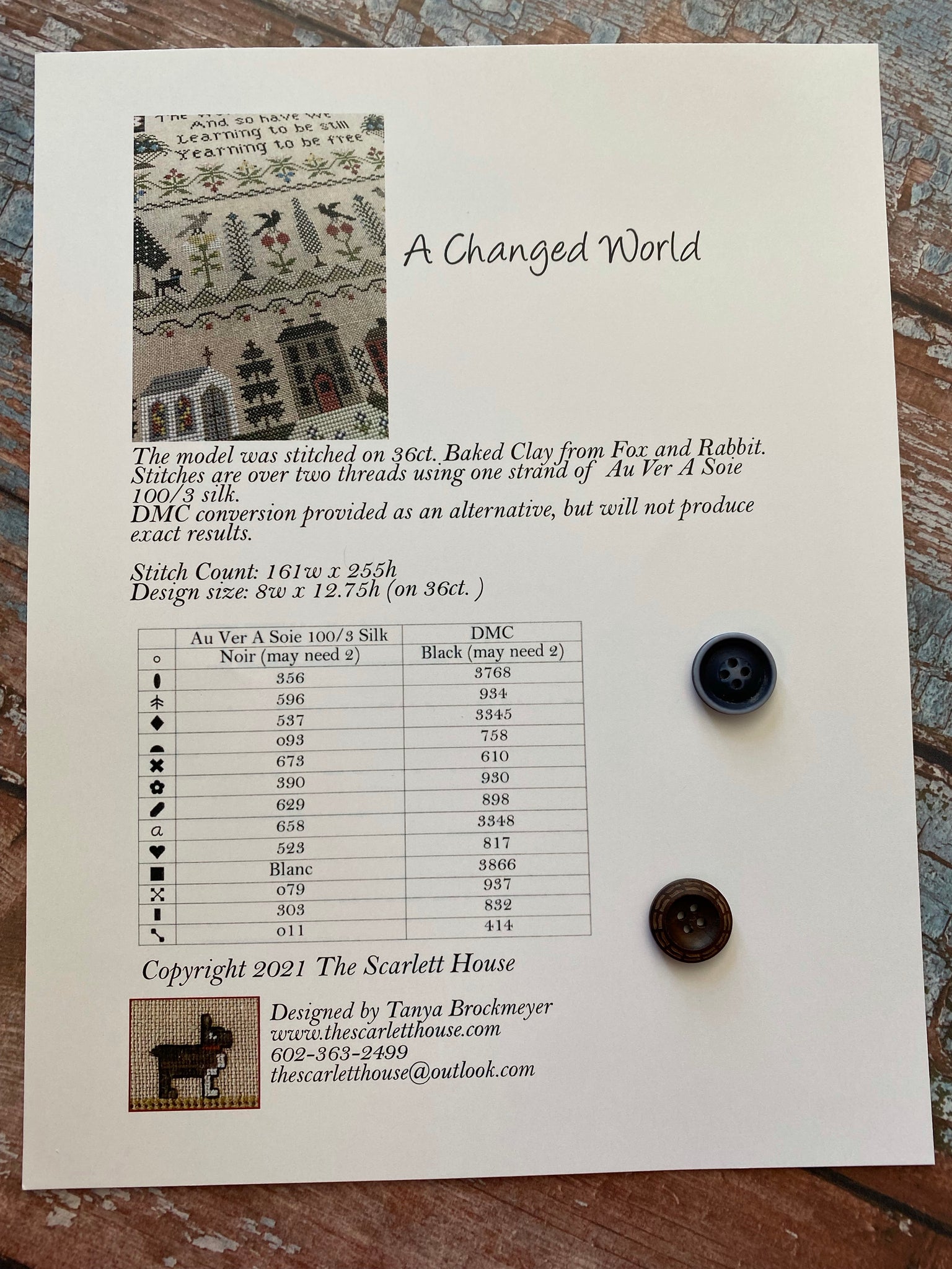 A Changed World | The Scarlett House *Please check out the picture of the back of the pattern to get model info and floss needed.