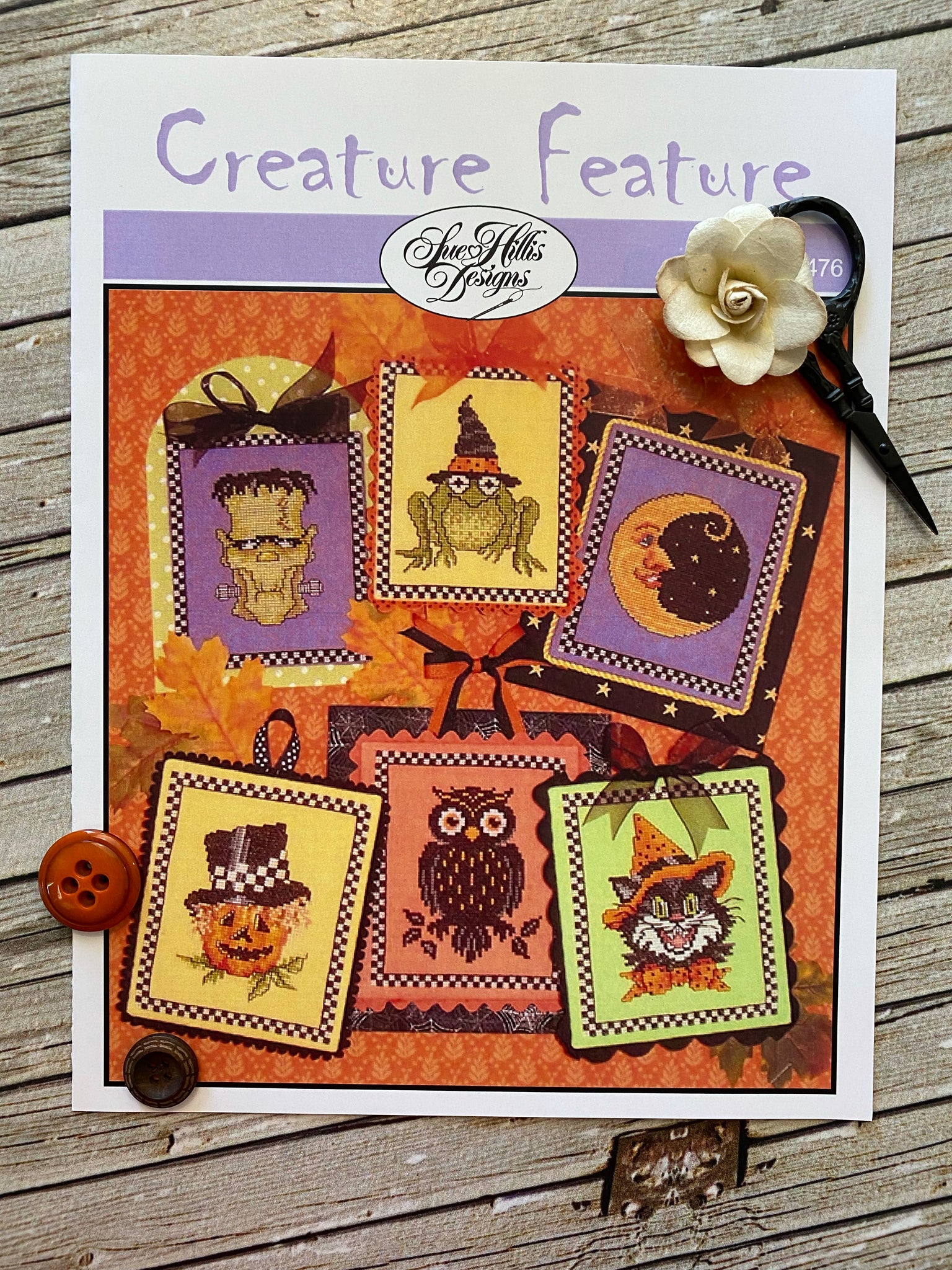 Creature Feature | Sue Hillis Designs *Please check out the picture of the back of the pattern to get model info and floss needed.