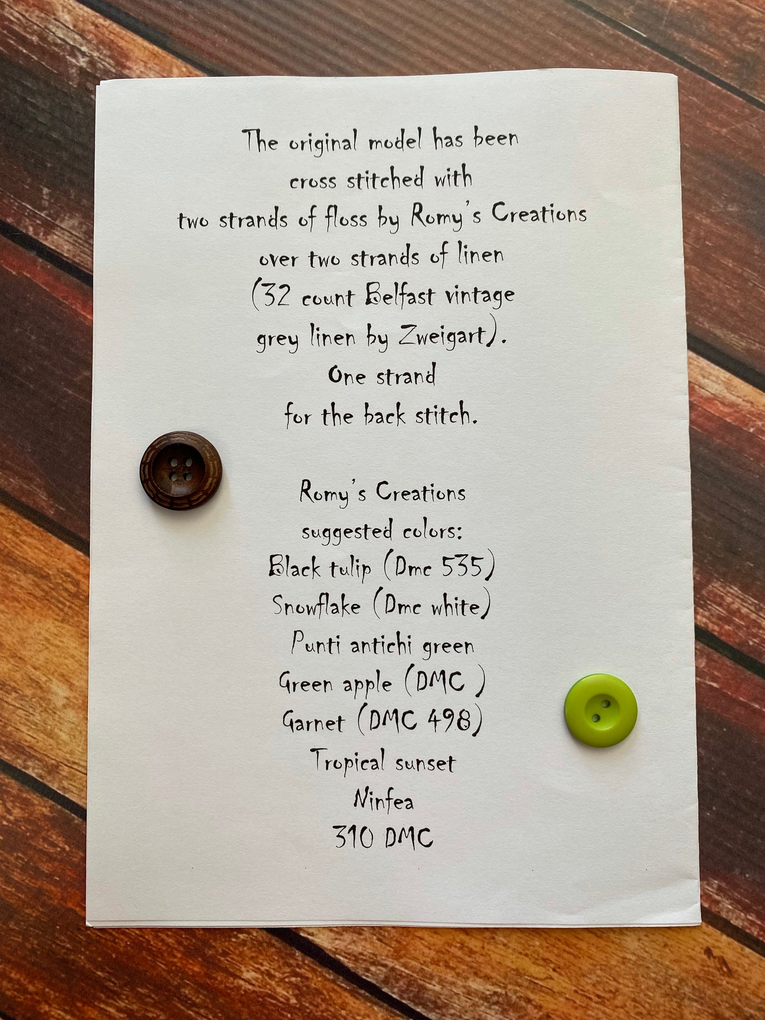 *Please check out the picture of the back of the pattern to get model info and floss needed.