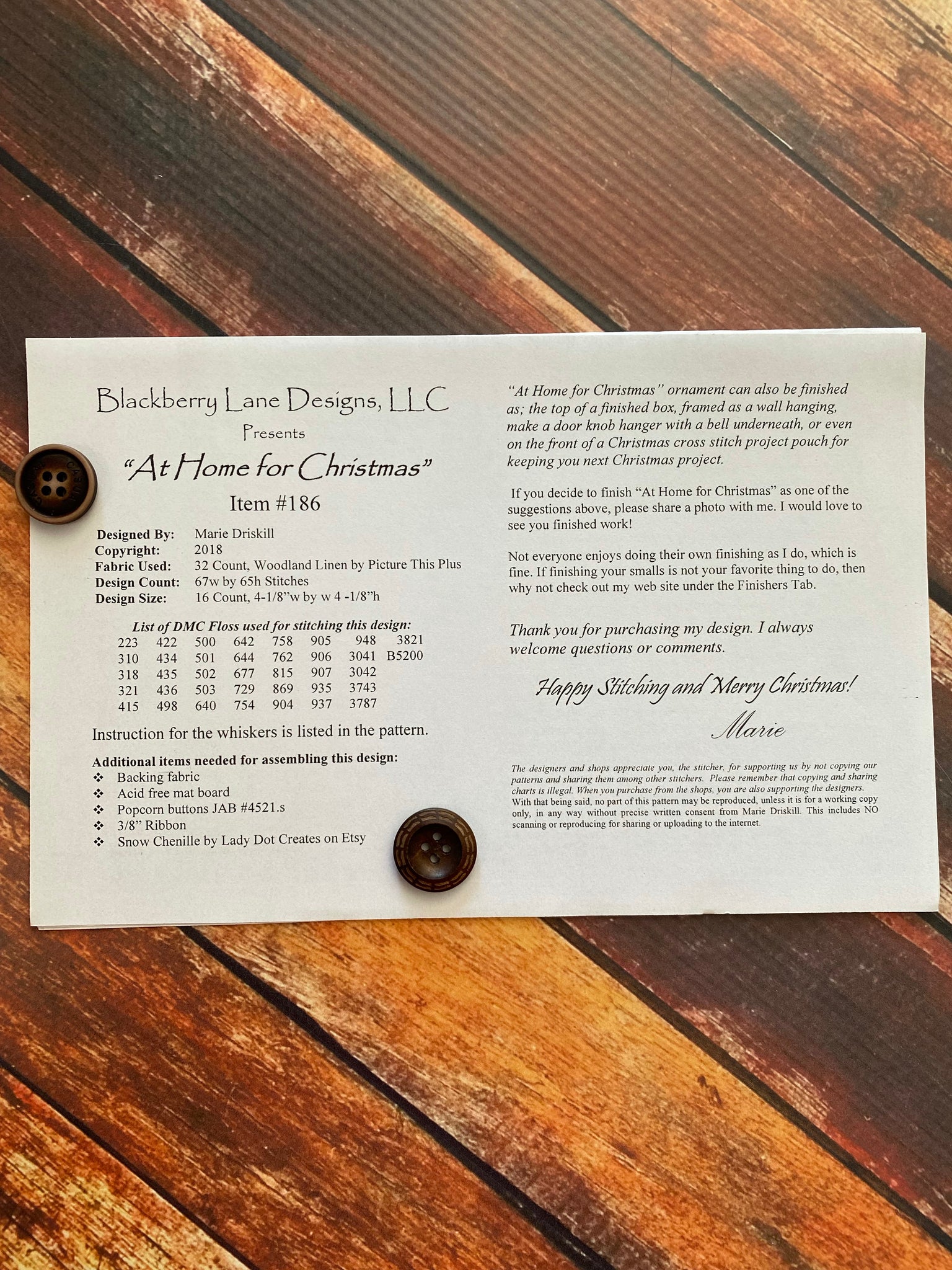 At Home For Christmas | Balckberry Lane Designs *Please check out the picture of the back of the pattern to get model info and floss needed.