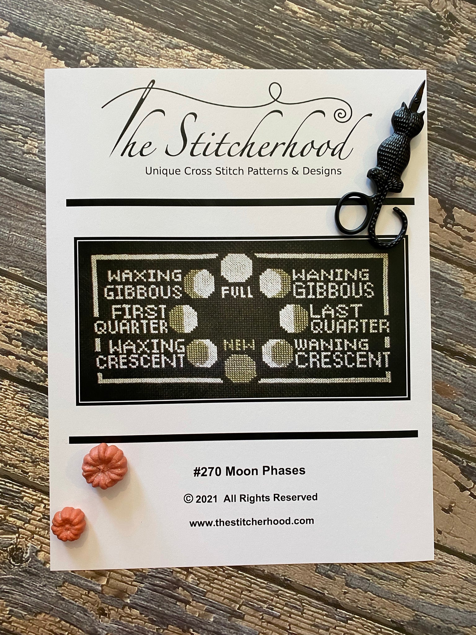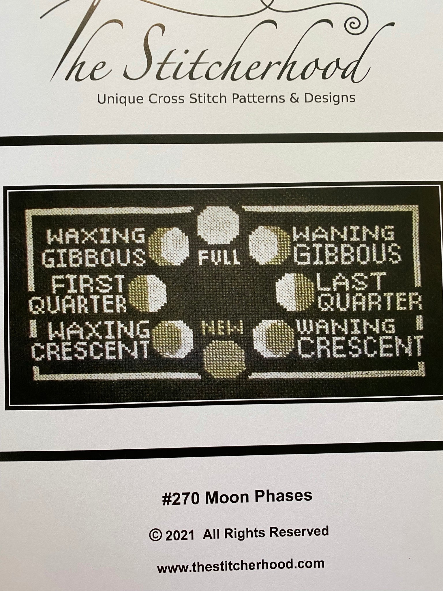 Moon Phases | The Stitcherhood *Please check out the picture of the back of the pattern to get model info and floss needed.