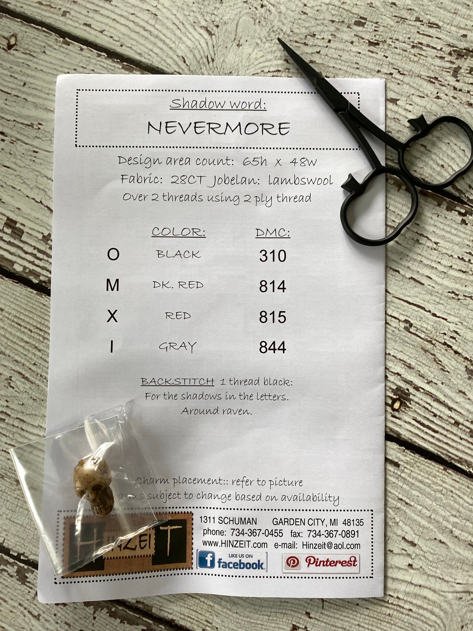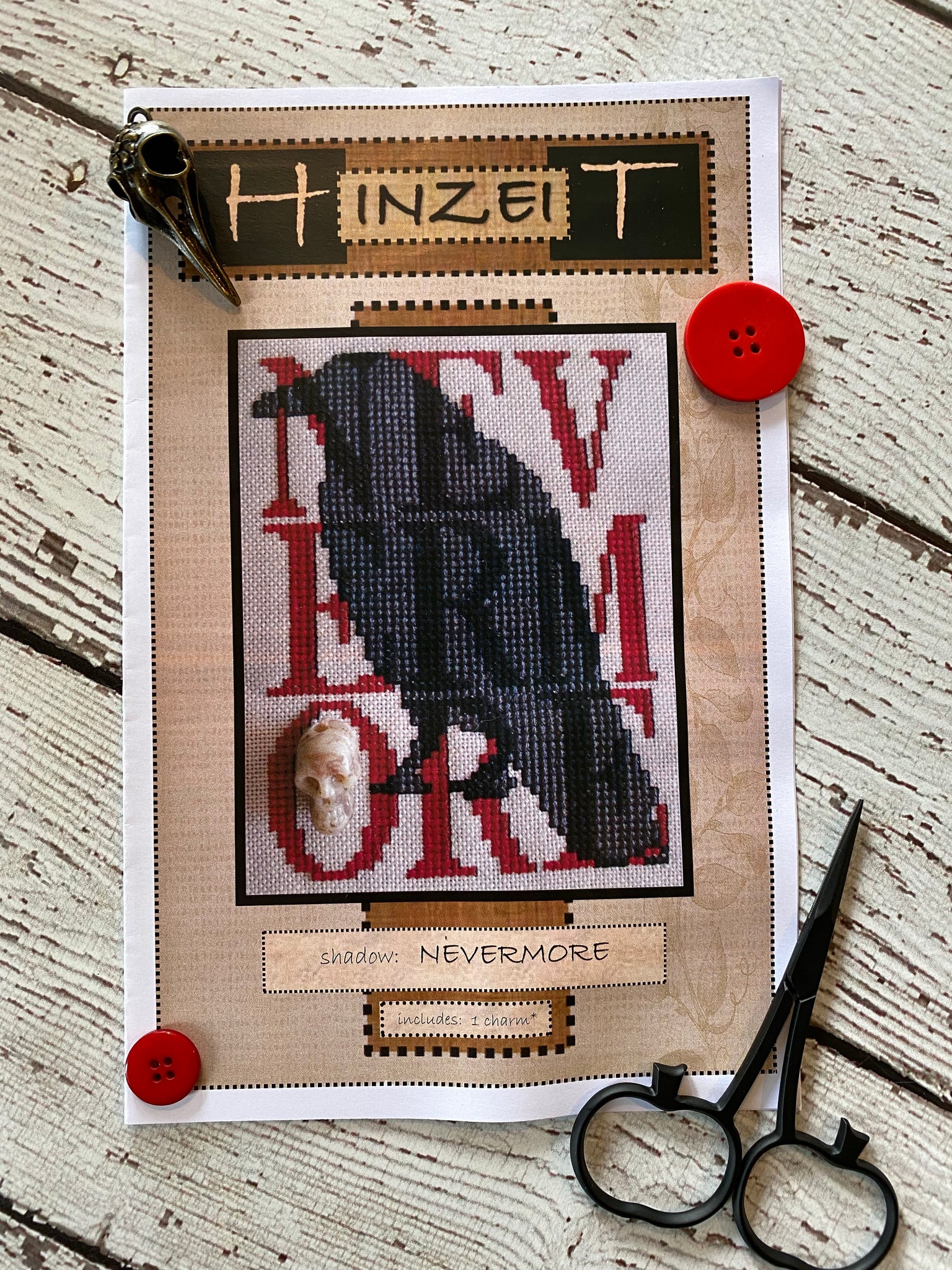 Nevermore | Shadow Words Series | Hinzeit | Charm Included *Please check out the picture of the back of the pattern to get model info and floss needed.