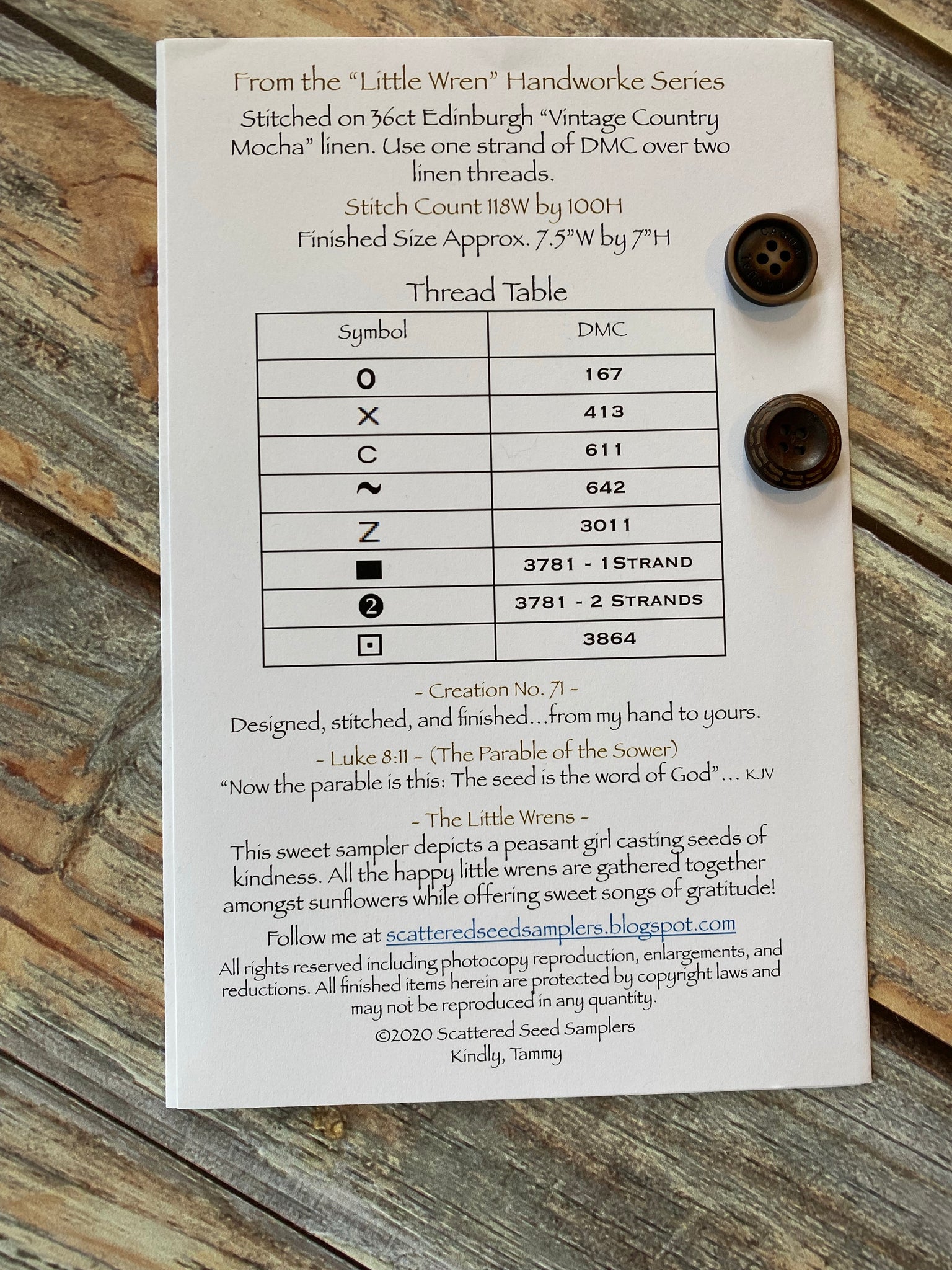 *Please check out the picture of the back of the pattern to get model info and floss needed.