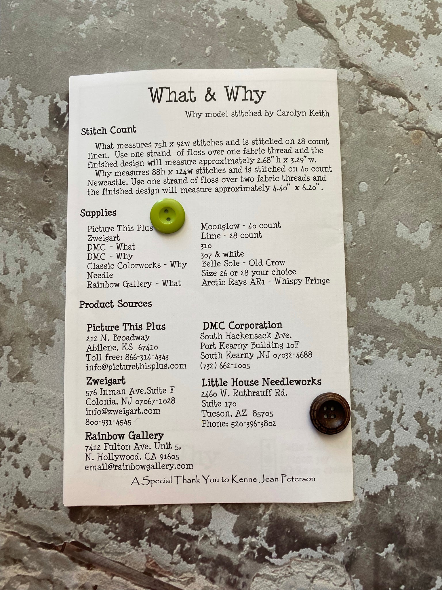 What & Why | Keslyn's *Please check out the picture of the back of the pattern to get model info and floss needed.