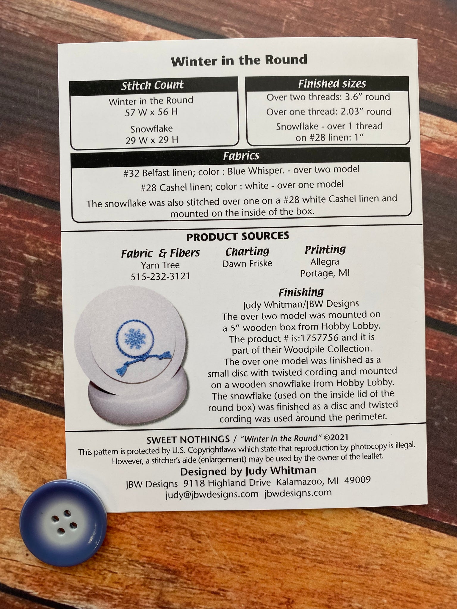 Winter In the Round | JBW Designs *Please check out the picture of the back of the pattern to get model info and floss needed.