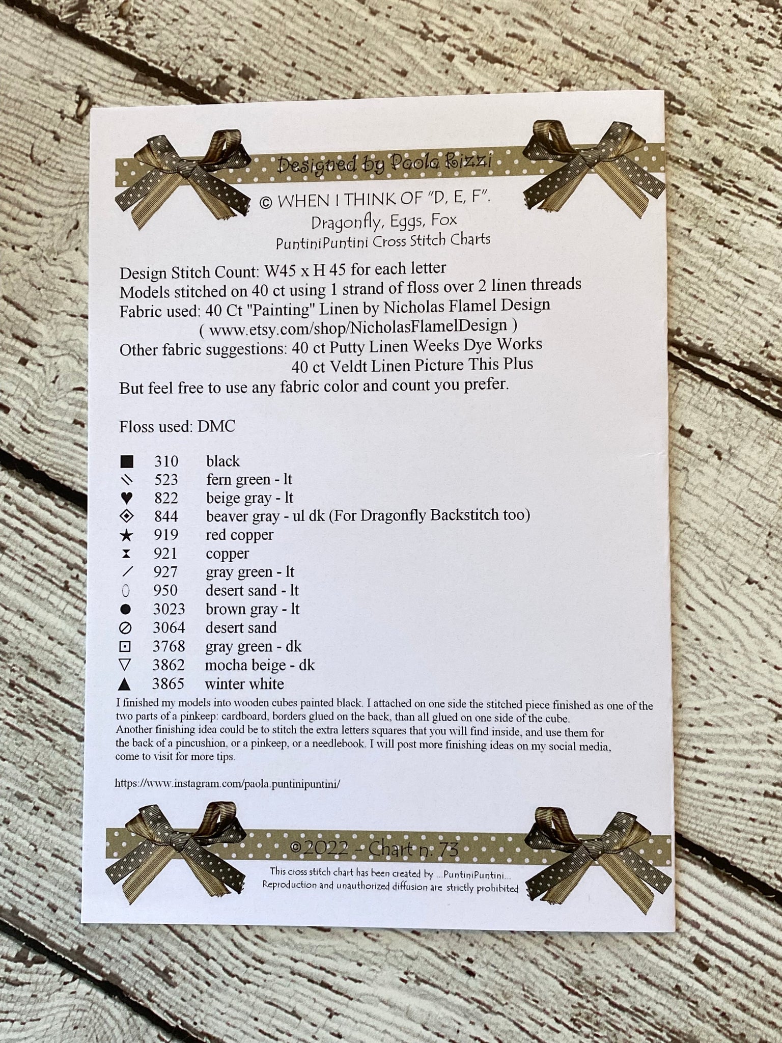 *Please check out the picture of the back of the pattern to get model info and floss needed.
