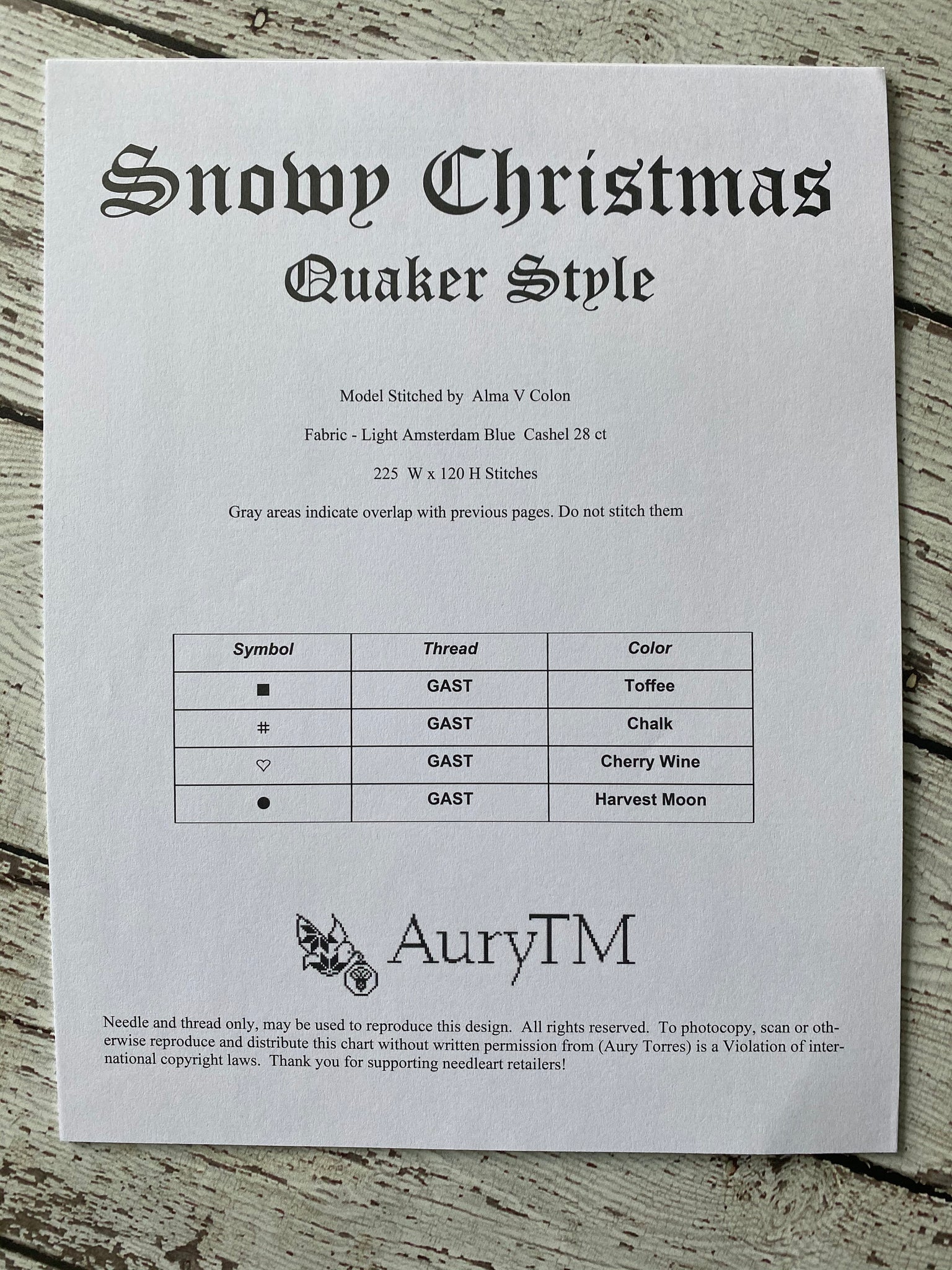 The model was stitched 28 count Light Amsterdam Blue Cashel linen, Gentle Art Sampler Threads