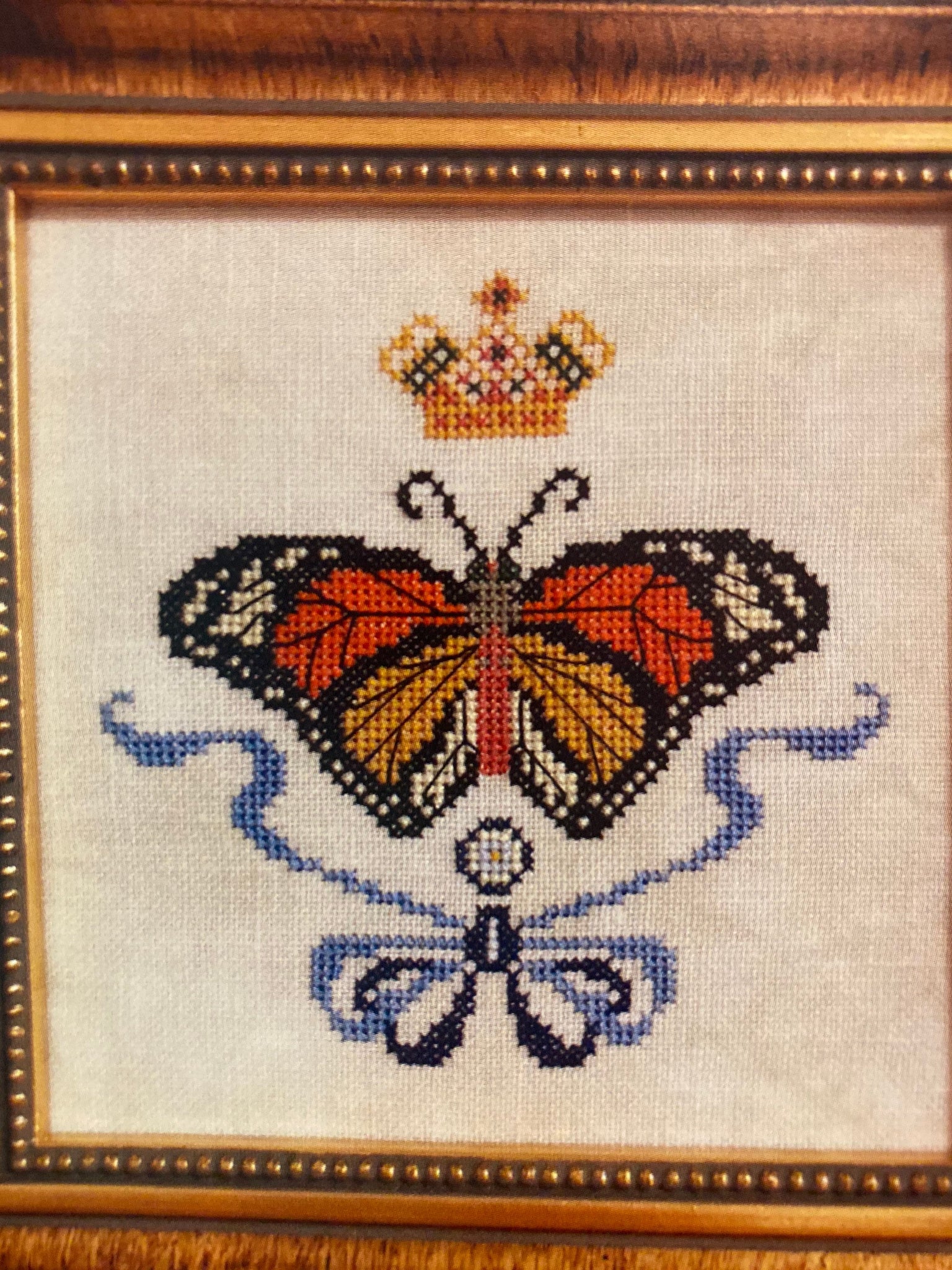 The model is stitched on 40 count Regency linen by Picture This Plus, DMC